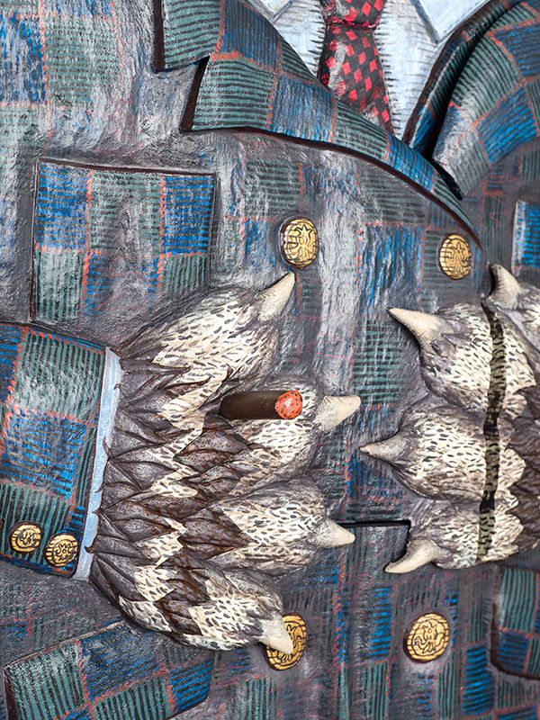 FatCat is a member of the 1%, adorning his portly physique in a designer suit and wingtip shoes – a fat cat indeed. His interior spaces address issues concerning pets (companion animals,) from overpopulation, to spaying/neutering, to exotic species, to the over-pampered.