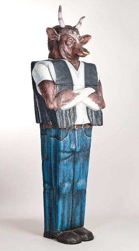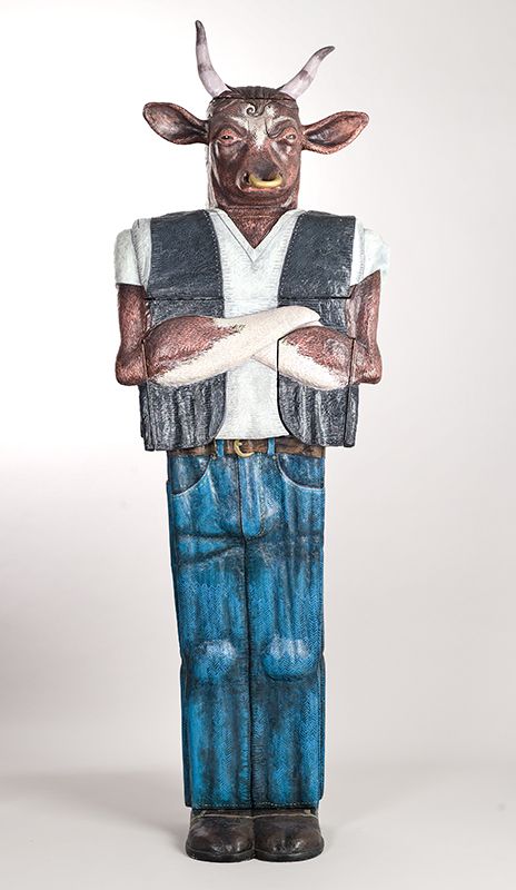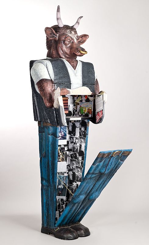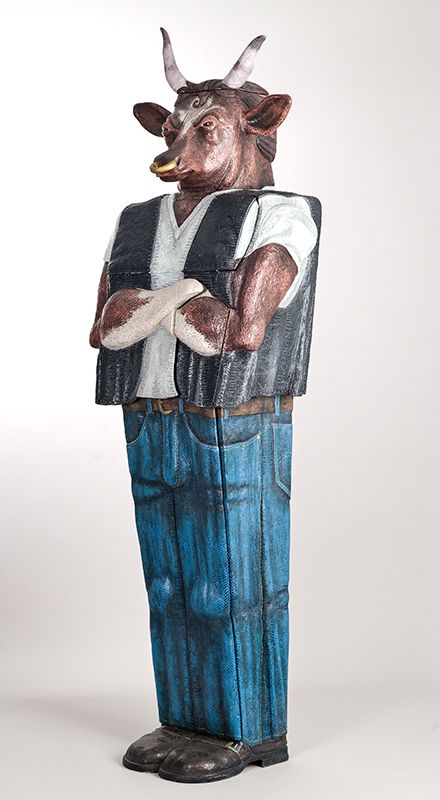 Bully is a tough guy from the set of West Side Story. Bully has a American Beef Federation tattoo, slicked back hair, tight jeans, and a pack of smokes rolled up in his t-shirt sleeve. His interior spaces addresses the exploitation of cattle for beef and leather, as well as the health and environmental issues associated with large scale beef production.