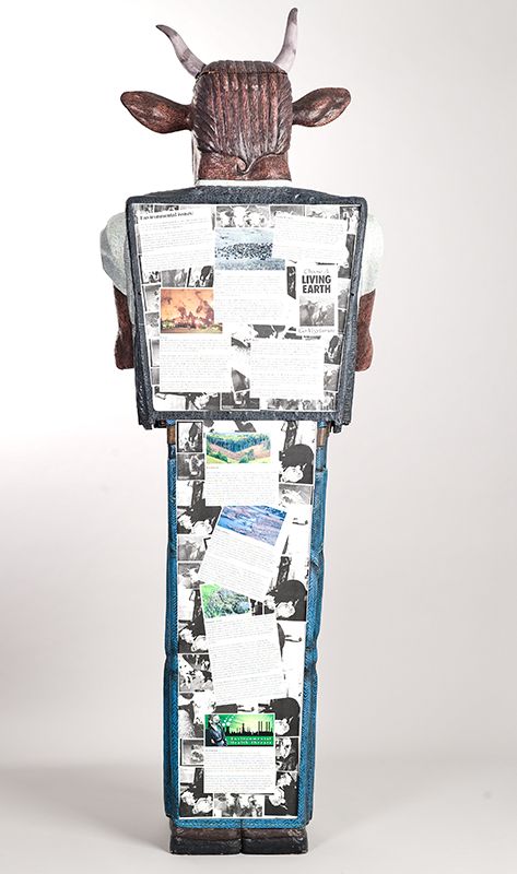 Carved, painted, and collaged wood