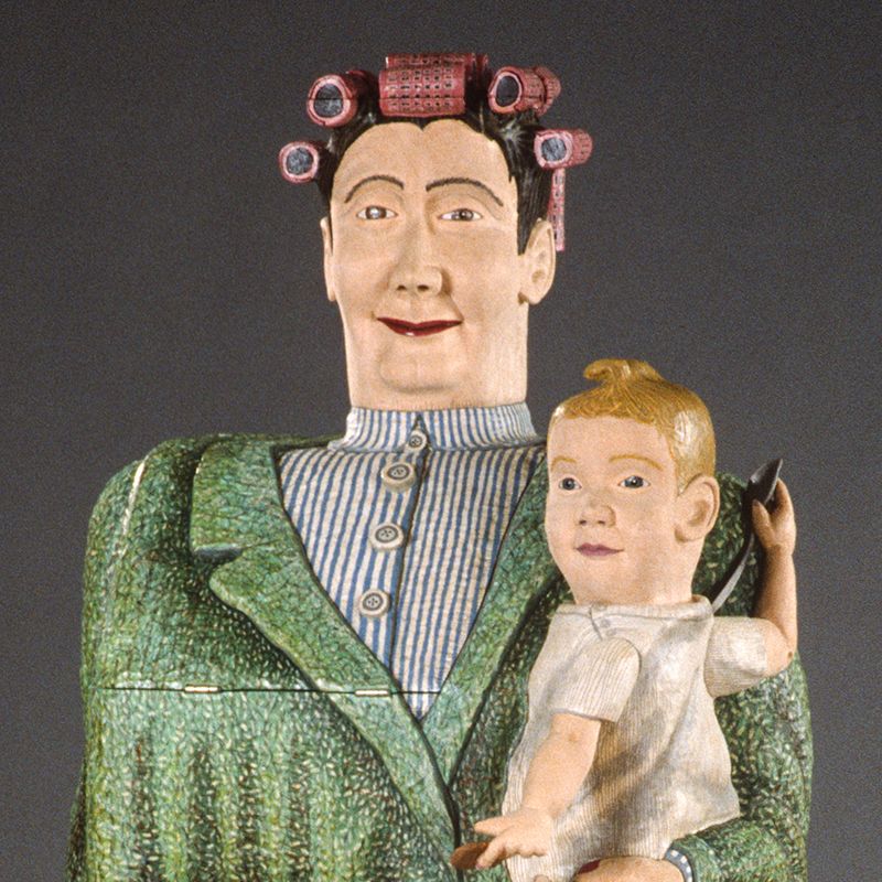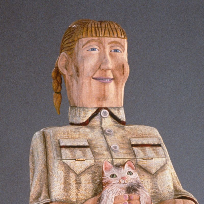 A series of figurative wooden cabinets that explores the context of my childhood, revealing the white female middleclass mid-western world in which I lived.